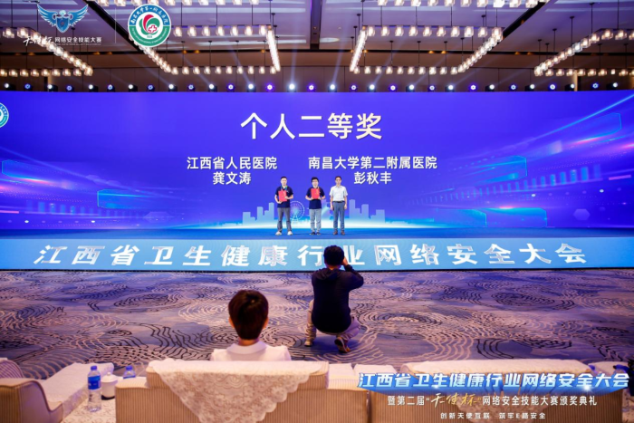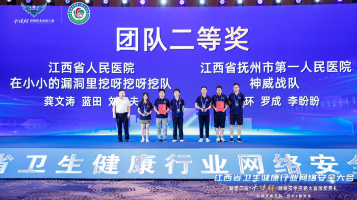 2023年7月13-14日,江西省卫生健康第二届“天使杯”网络安全技能大赛决赛暨江西卫生健康网络安全大会在南昌举办,经过激烈紧张的角逐,江西省人民医院(南昌医学院第一附属医院)派出的“在小小的漏洞里挖呀挖呀挖队”获总成绩第二名,获得团队二等奖,我院信息处龚文涛获得个人二等奖。