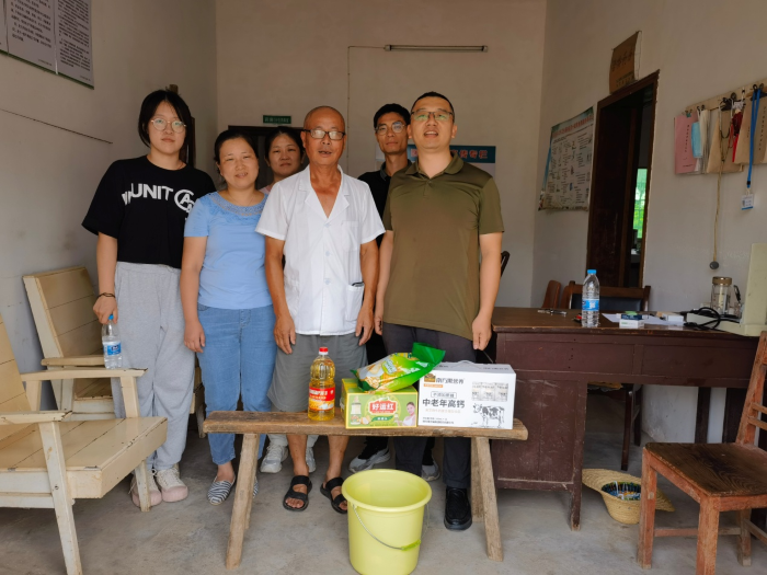 2023年8月15日上午,在第六个“中国医师节”来临之际,省人民医院驻村工作队、省卫健委选调生、柴桑区委选调生一同来到村卫生室,看望慰问村医朱佑冬,并向他致以节日的问候和祝福。