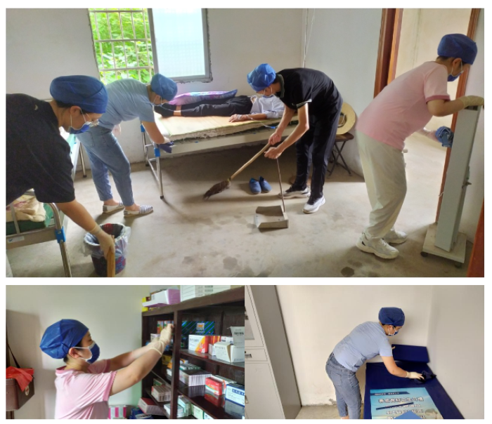 随后,驻村工作队与选调生一起,自备清洁工具,帮助村医全面打扫了卫生室,整理了杂物,归置了医疗器械,并对院感提出了指导意见。烈日炎炎,村卫生室没有空调,大家挥汗如雨,干劲十足。