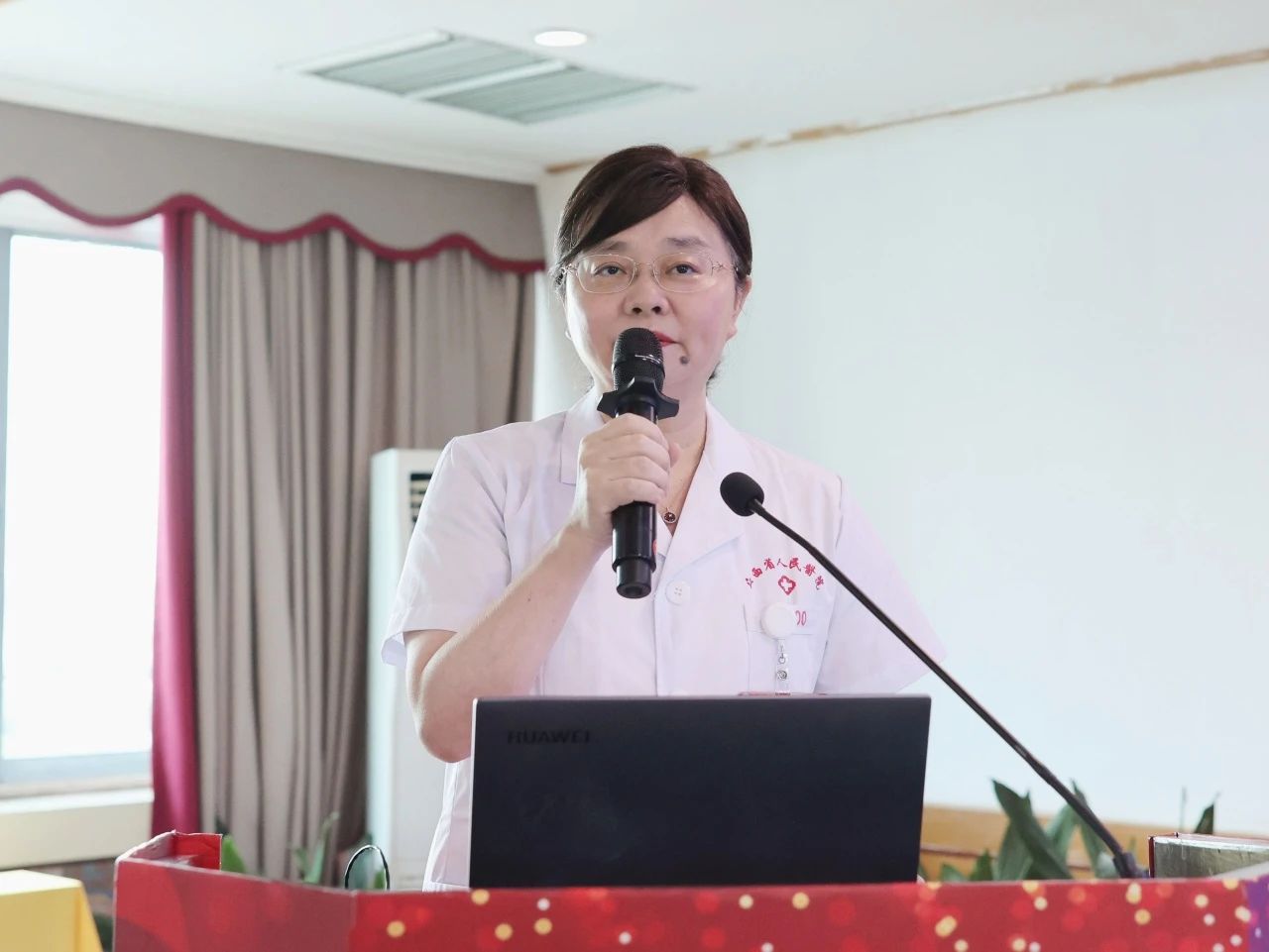 钭方芳作训勉讲话,她强调新员工要通过岗前培训这“第一节课”,坚定信念,笃志笃行,严肃走好“入门之路”。并结合自己的从医经历、工作经历,与新进员工分享了五点体会:一是牢记初心使命,做国之大医;二是牢记红医精神,做赤子红医;三是牢记生命至上,做精诚之医;四是牢记团结协作,做和合之医;五是牢记廉洁从医,做清廉之医。希望新职工可以在省人民医院踔厉奋发、勇毅前行,成就自我、造福患者,为奋力实现中国式现代化健康江西新篇章贡献力量。