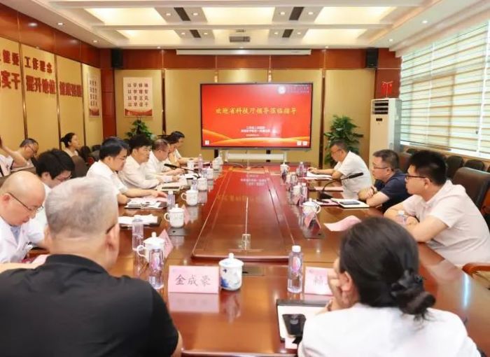 2023年9月1日下午,江西省社会发展科技处二级主任科员余康、科技信息研究所科长鲍聪颖来江西省人民医院(南昌医学院第一附属医院)开展项目政策解读与座谈交流会。省人民医院党委副书记、院长陈志平,院党委委员、南昌医学院临床医学院副院长徐仁伵,院党委委员段利华及相关项目负责人代表参加了此次座谈会。