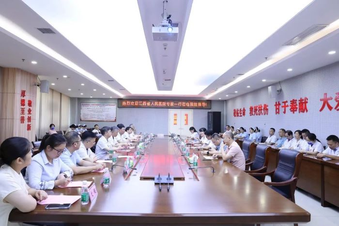 2023年9月1日,江西省人民医院(南昌医学院第一附属医院)专家团队一行10人来到柴桑区人民医院开展义诊活动,为基层人民群众提供优质的医疗服务。活动由省人民医院驻柴桑区官场村工作队、社协处共同组织,大外科党总支书记、器官移植科主任李新长带队。柴桑区人民医院党委书记余红霞、院长刘光胜等与专家们座谈交流。