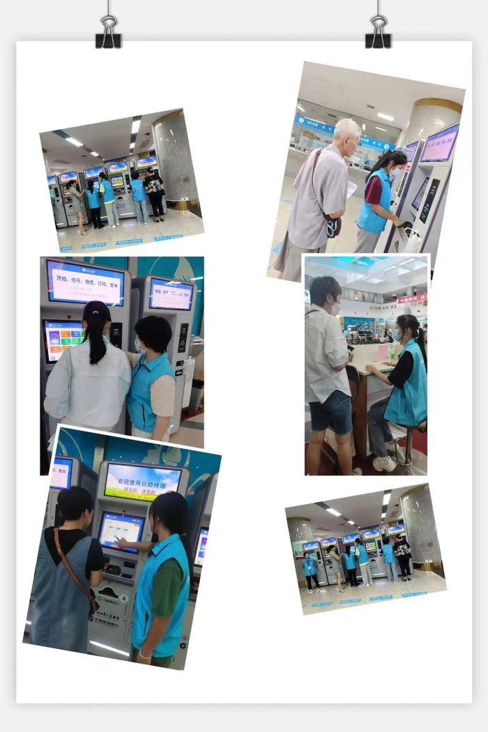 身穿蓝马甲的志愿者们按照医院安排,在志愿者服务工作站、导诊台、自助终端机、诊室分诊处等地协助患者或患者家属进行诊室指引、挂号、取号、缴费、答疑解惑等服务,他们穿梭在医院的各个角落,传递爱心,传递责任,传递文明。他们热情周到的服务获得了患者与家属的一致称赞,成为医院一道亮丽的风景线。