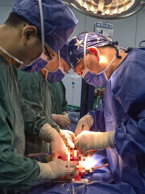 此次心脏移植工作得到了医院领导的高度重视。9月10日上午,在麻醉科、手术室的大力协作和支持下,由心脏大血管外科谢爱民主任医师、孙黄涛副主任医师、周鑫主治医师、杨冬梅主治医师、邱志宏医师、游贯淼医师联合的手术团队为胡先生实施了心脏移植手术。切除病变心脏后,成功将供体心脏移植到患者心包腔内,恢复血流后,心脏开始自主工作,整个手术历时4小时余。