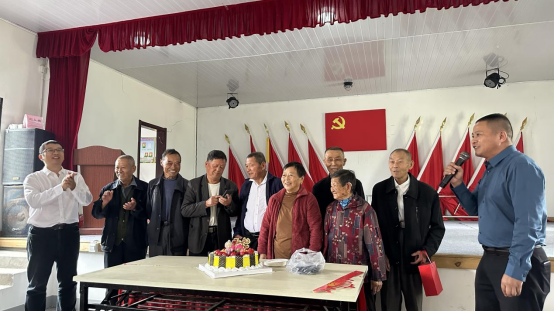 借难得的相聚机会,官场村举办了第一次集体生日会。农历九月出生的8位老人被集体邀请登台,驻村队员推出大蛋糕,在全场齐唱生日歌的热烈氛围中,老寿星们许愿,分享了这份甜蜜,为平淡的乡村生活增添了集体仪式感、幸福感,简短而隆重。