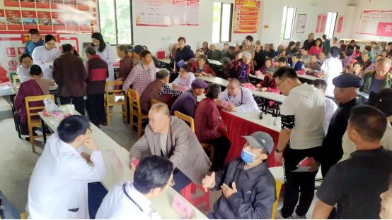 2023年10月19日上午,在重阳节来临之际,江西省人民医院(南昌医学院第一附属医院)定点帮扶的九江市官场村重阳节集体生日会暨义诊活动在村文化馆举行,活动由驻村工作队牵头,村两委共同组织。省人民医院干部保健处联合多学科医护人员共10人应邀来到村里参与演出,并举行敬老义诊服务。