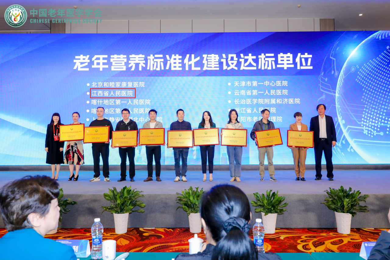 为落实国家老年健康体系建设规划,积极应对人口老龄化的国家战略,促进老年医学营养健康发展,2023年10月20日-21日,中国老年医学学会营养与食品安全分会学术年会在武汉召开,会上公布了首届全国“老年营养标准化建设达标单位评定”遴选结果,江西省人民医院(南昌医学院第一附属医院)临床营养科获批老年营养标准化建设达标单位。