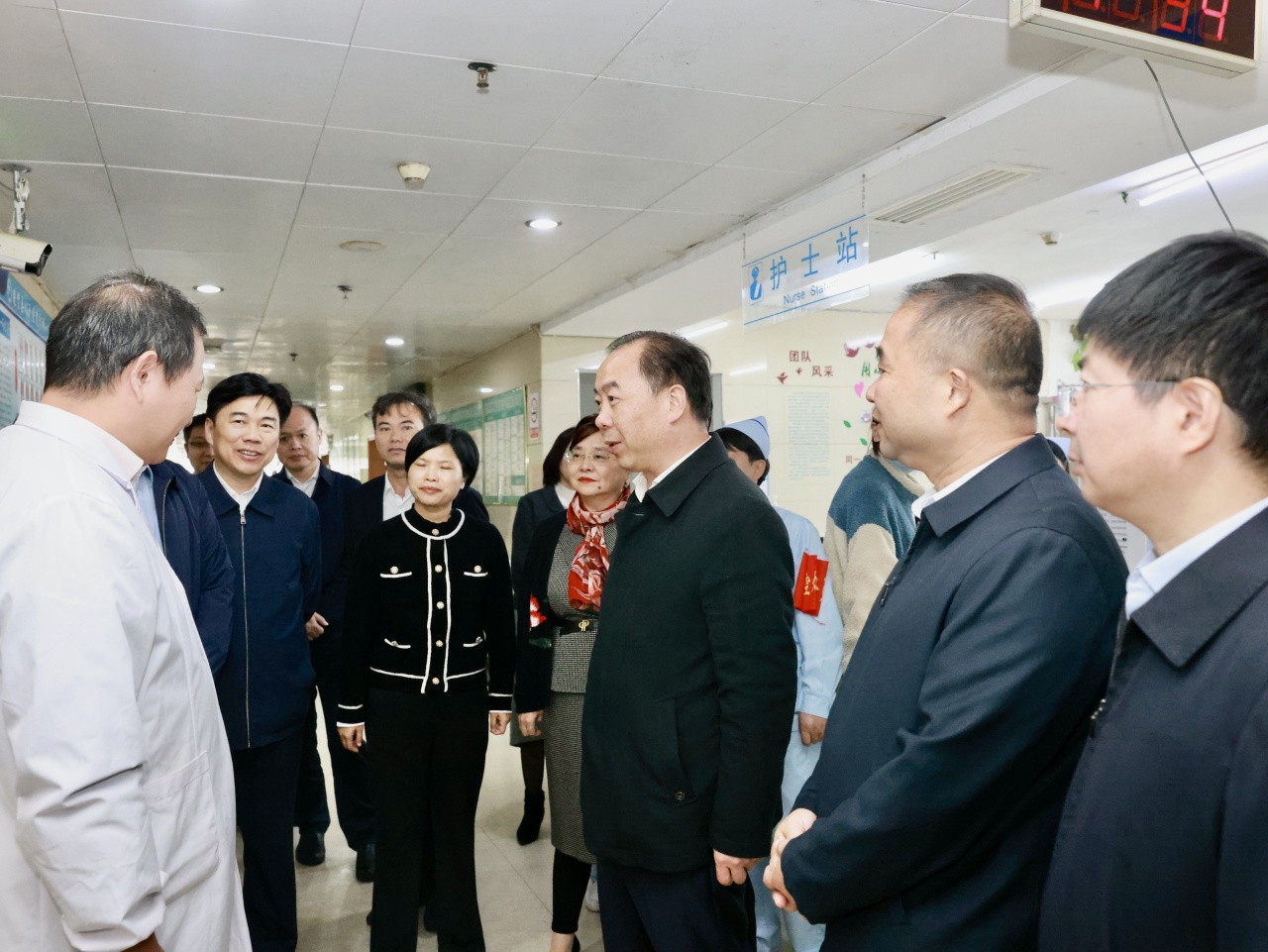 11月10日,省卫生健康委党组书记、主任龚建平深入江西省人民医院进贤医院宣讲习近平总书记考察江西重要讲话精神,调研指导医疗服务体系建设和公立医院高质量发展工作。南昌市人民政府副市长王强,省卫生健康委党组成员、省人民医院党委书记钭方芳,省卫生健康委党组成员、副主任,省疾控局党组书记、局长李中坚,省人民医院院长陈志平等参加调研。