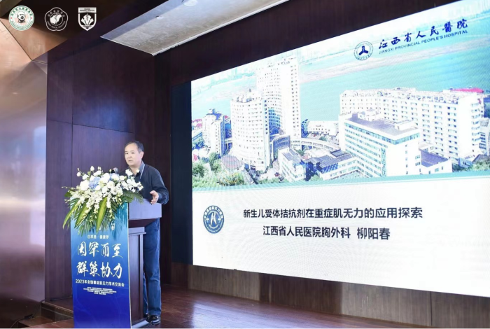 2023年11月11日,海峡两岸医药卫生交流协会胸外科专委会重症肌无力专业学组在海南省海口市正式成立,2023年全国重症肌无力学术交流会同期举行。活动由厦门大学一附院院长、胸外科主任医师姜杰与江西省人民医院(南昌医学院第一附属医院)胸外科主任医师柳阳春共同牵头,两所医院共同支持。姜杰当选专业学组名誉主任委员,柳阳春当选主任委员。