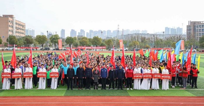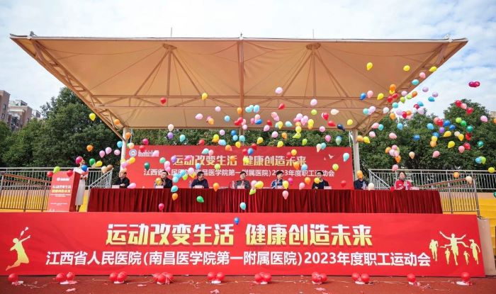 11月19日上午,南昌医学院小蓝校区体育场晴空万里,暖阳高照。在嘹亮的国歌声中,江西省人民医院(南昌医学院第一附属医院)2023年度职工运动会在这里隆重开幕。省卫健委党组成员、院党委书记钭方芳致辞并宣布运动会开幕,南昌医学院党委委员、副院长赖国文,省卫健委直属机关党委专职副书记蓝希梅出席开幕式并先后致辞,在家医院领导出席,院党委副书记、院长陈志平主持。来自全院5个工会分会、住培医师代表、省人民医院进贤医院运动员代表及离退休老同志代表近500人参加开幕式。