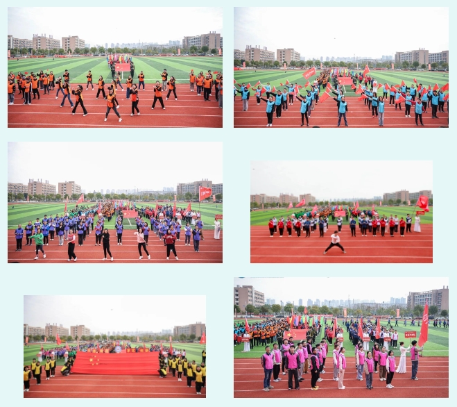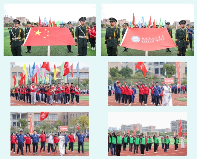 上午9:30,激昂的《运动员进行曲》开启了运动会入场仪式。国旗护卫队、院旗队、彩旗队依次入场,9个运动员队方阵踏着整齐的步伐、喊着响亮的口号,展示飒爽多姿的风采,先后走过主席台。