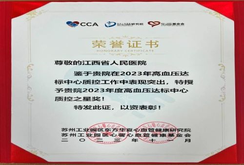 | 喜讯!江西省心血管医院高血压达标中心获国家2023年度质控之星奖 |