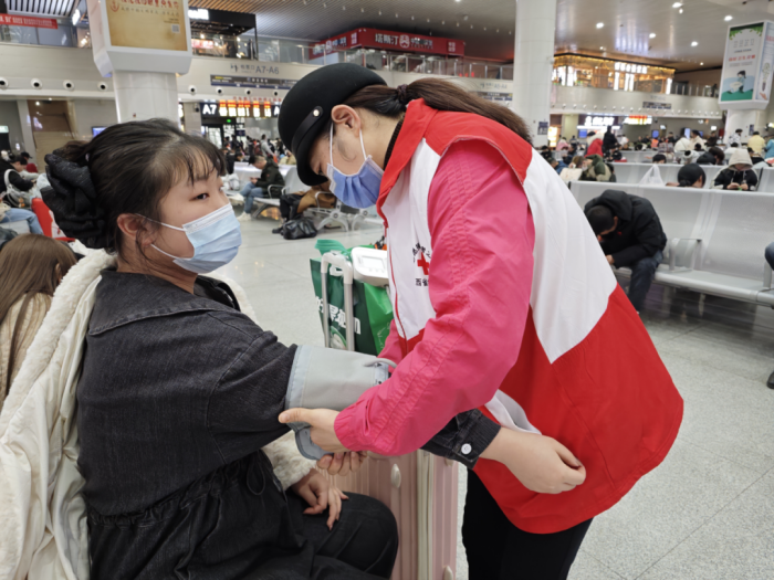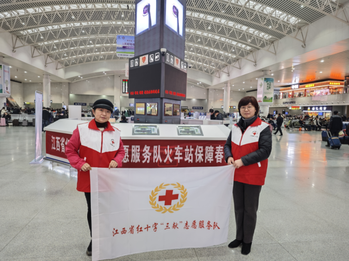 1月26日以来,2024年春运如火如荼地进行着。江西省红十字“三献”志愿服务队和往年一样,启动了火车站保障春运活动。江西省人民医院(南昌医学院第一附属医院)血液内科十余位护士在科副护士长卢其玲的带领下,克服工作繁忙、人员紧张的困难,轮流承担了5次志愿服务,做好春运期间的医疗保障服务,为群众安全健康保驾护航。