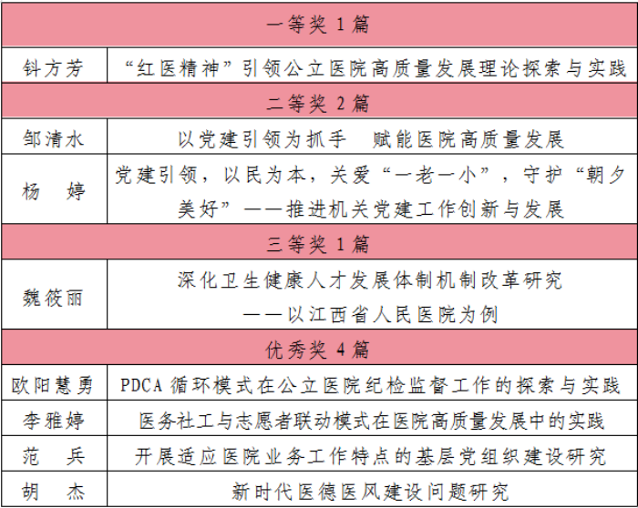 | 江西省人民医院8篇课题入选2023年全省卫生健康思想政治工作促进会课题获奖名单 |