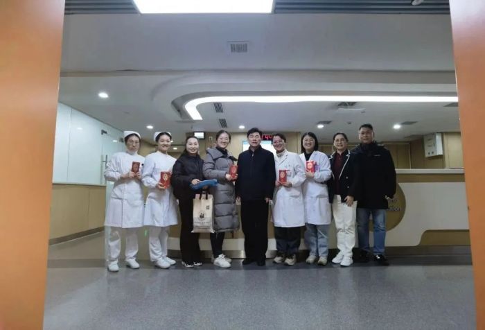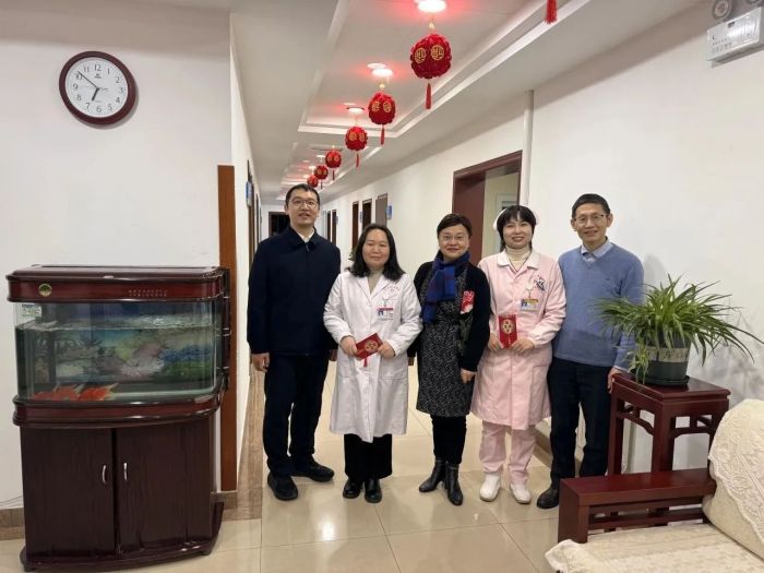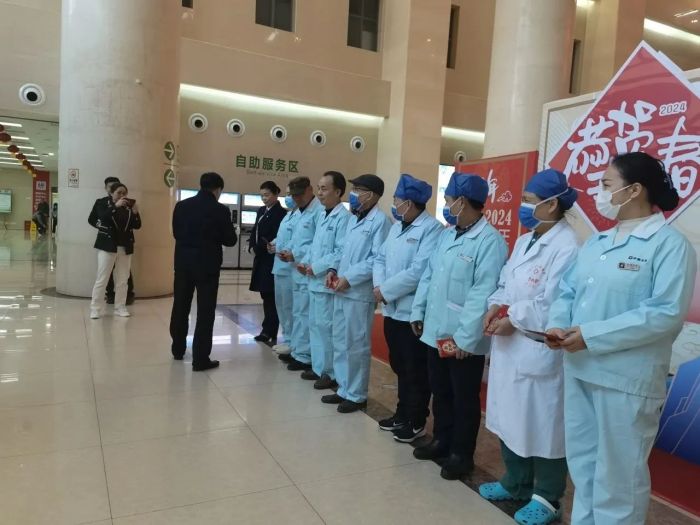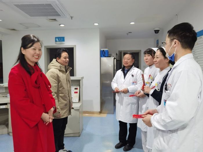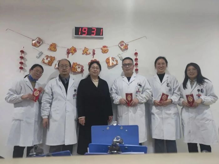 “祝大家新年快乐,我们来给大家拜年了”,每到一处,院领导都与坚守岗位的一线医护人员亲切交谈,详细了解当前科室运转、住院患者病情和药品器械储备等情况,充分肯定大家在过去的一年里,为医院事业高质量发展和守护病人安康作出的重要贡献,并嘱咐大家在全力以赴做好各项医疗服务工作之时,也要注意加强自身防护和合理休息,以更饱满的状态投入医疗救治工作,为人民群众身体健康和生命安全提供扎实有力的保障。