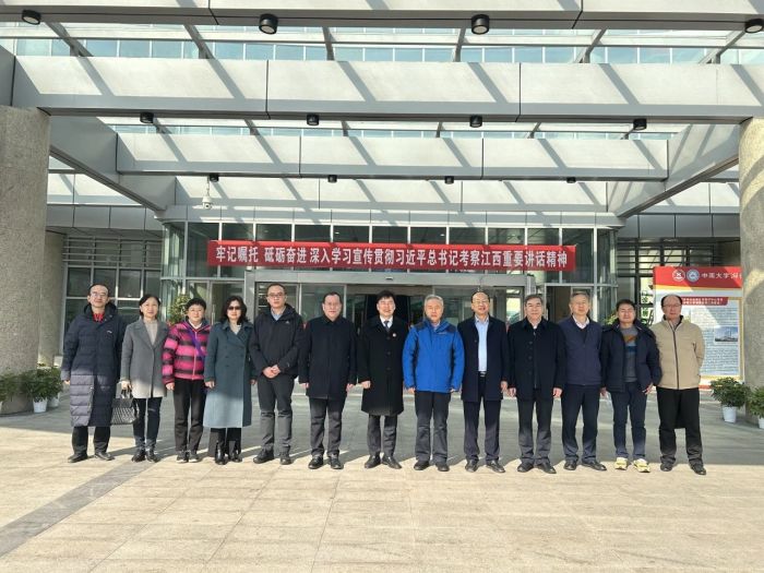 2024年1月10日上午,中国工程院原副院长、院士赵宪庚,中国工程院院士邓建军带队莅临江西省人民医院(南昌医学院第一附属医院)红谷滩院区,就核医疗健康产业高质量发展工作展开调研并座谈。省科技厅一级巡视员鄢帮有、省科学院科技战略研究所副所长王小红一行陪同调研。省人民医院党委副书记、院长陈志平,核医学科及相关职能处室负责人参与调研活动。