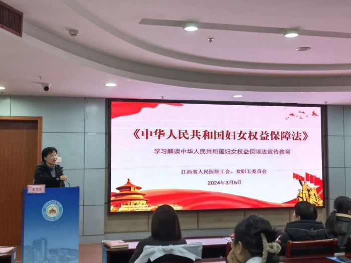 3月5日,在“三八”国际劳动妇女节来临之际,江西省人民医院(南昌医学院第一附属医院)工会及女职工委员会开展了妇女权益保护法律知识专题宣讲。