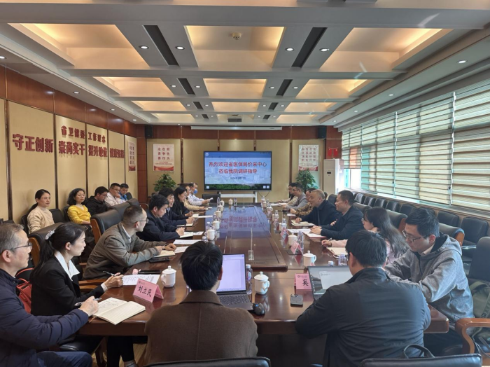 2024年3月12日,江西省医疗保障局价采中心副主任袁斌、李亚锦一行到江西省人民医院(南昌医学院第一附属医院)调研座谈。院长陈志平、副院长梁斌、总会计师欧阳环宇及相关处室负责人参加。