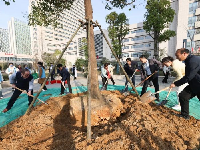 钭方芳、陈志平等院领导一边植树,一边与有关负责同志交流,了解树种生长周期、日常养护等情况。他们指出,绿水青山就是金山银山,树立植绿增绿、爱绿护绿的文明风尚,大力倡导绿色低碳的生活方式,增加院区绿化空间,不仅能改善人民群众就诊环境,也是“美丽中国”建设的生动实践。