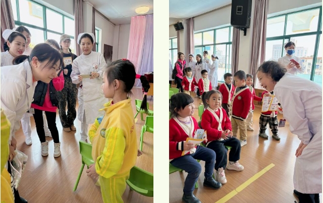 金涵为孩子们带来了生动有趣的科普讲座,通过猜谜语、做游戏等方式,让孩子们积极地参与到活动中来。眼科的医护人员给现场的80余名小朋友们发放了护眼宣传册,带领小朋友们学习“护眼歌谣”,让孩子们在欢快的氛围中学到关于近视预防的小知识,知道哪些行为是保护眼睛,哪些行为会对眼睛造成危害。