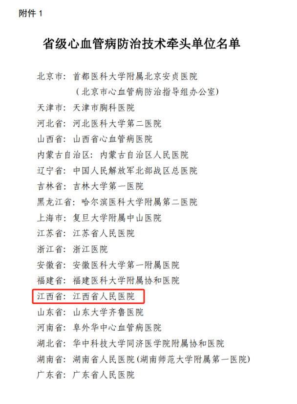 | 喜讯!江西省人民医院获省级心血管病防治技术牵头单位 |