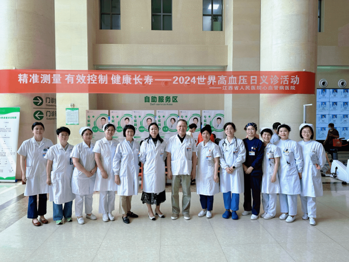 2024年5月17日上午,江西省人民医院(南昌医学院第一附属医院)—江西省心血管病医院在红谷滩院区门诊举行“世界高血压日”大型义诊活动。今年是第20个"世界高血压日",主题为“精准测量 有效控制 健康长寿”。旨在引导居民形成健康生活方式,科学认识和预防高血压,为健康中国建设贡献江西力量。