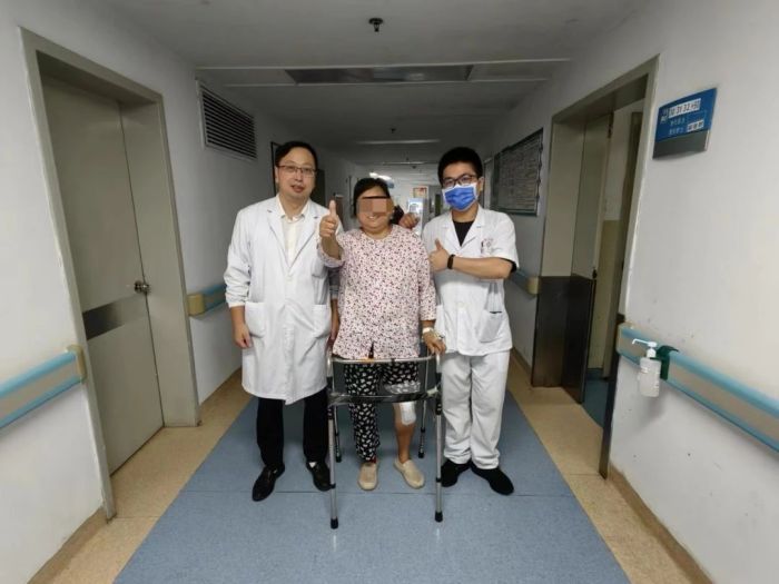 2024年6月29日关节外科主任医师何剑颖为体重170多斤的龚大妈完成手术,术后伤口愈合良好,假体位置稳定,正康复训练中。