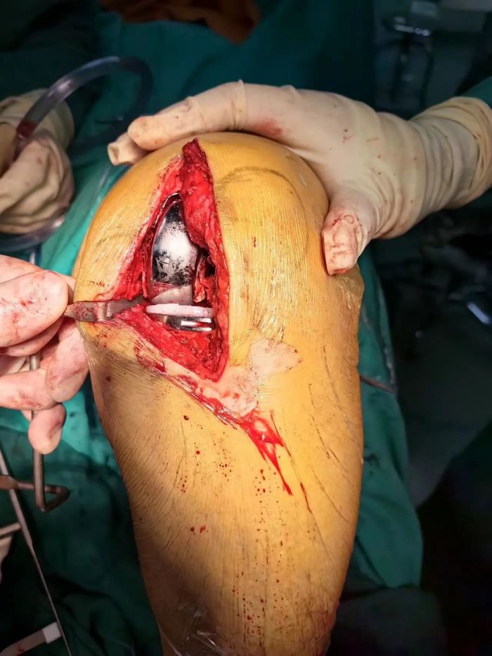 因为病人过于肥胖,体重指数BMI30,故术中使用4号超大胫骨托承载体重降低膝关节负荷,术后第二天,龚大妈便可以卧位坐起用餐,术后第三天拔除引流管,术后第四天顺利下地迈开步子行走,目前伤口愈合良好,假体位置稳定,康复训练正常进行中。