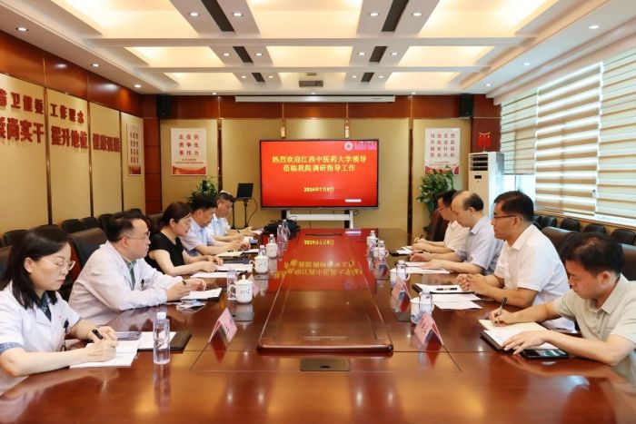 2024年7月8日上午,江西中医药大学副校长陈焕文,中医学院院长孙有智等一行四人到江西省人民医院(南昌医学院第一附属医院)调研交流。省卫生健康委党组成员、院党委书记钭方芳,院党委副书记、院长陈志平,公共卫生首席专家、科研教育部部长汪俊,相关职能部门负责人陪同现场走访并出席调研座谈交流会。
