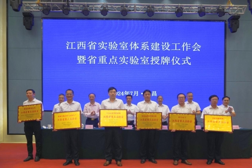 2024年7月18日,江西省实验室体系建设工作会暨省重点实验室授牌仪式在昌召开。江西省政府副省长夏文勇出席会议并讲话,中国科学院院士、江西农业大学校长魏辅文,中国科学院院士、南昌实验室主任江风益出席会议。会上,省科技厅党组书记、厅长宋德雄介绍了江西省实验室体系建设情况。来自科研院所、高校、省实验室、企业的4位代表分别作了典型发言。24家省重点实验室代表接受了授牌。会议由省政府副秘书长熊科平主持。