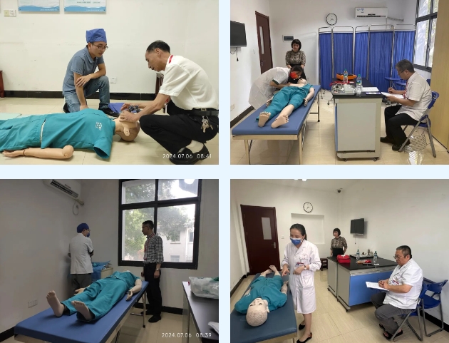 本次考核项目全面,既包括心肺复苏术、AED的使用等急救操作,也包括穿刺、查体等常规操作,以及气管插管、心包穿刺、穿脱无菌手术衣等专科项目。为保证考核工作的规范化和标准化,考官严格把关,统一评分标准,在考核过程中对有操作不规范的环节,在考核结束后立即给予纠正,并亲自予以示范,使本次技能考核达到以考促提高、以考带规范、以考提质量的目的。