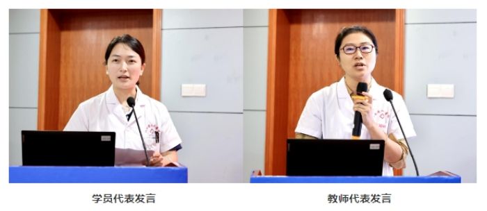 学员代表分宜县人民医院医师钟亚男和教师代表内分泌二区教学秘书邓颖分别上台发言。学员代表分享了自己在培训过程中的收获和感悟,以及对未来职业生涯的憧憬和期待。教师代表分享了带教过程中好的经验和方法,同时希望学员要继续努力学习,不断提升自己的专业素养。