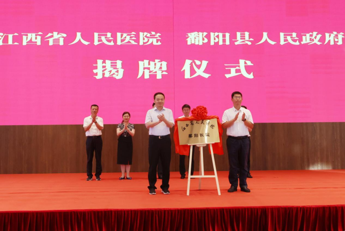 上饶市委书记陈云、省卫健委副主任李中坚为江西省人民医院鄱阳医院揭牌。