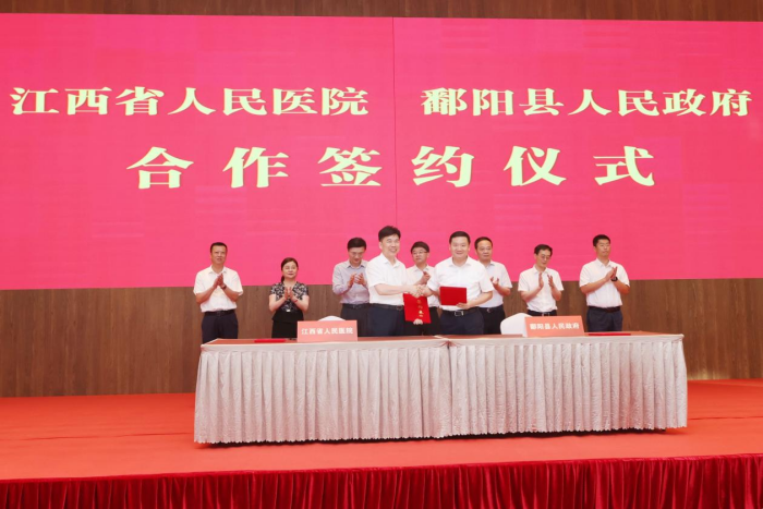 活动中,江西省人民医院与鄱阳县人民政府签订托管鄱阳县第二人民医院协议,以此提升鄱阳县医疗服务能力和水平,推动优质医疗资源下沉,力争五年内将鄱阳县第二人民医院全面打造成集智能化、信息化、现代化于一体的智慧型三级甲等水平综合性医院。