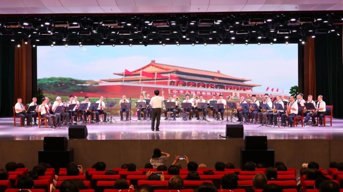由南昌市老干部活动中心艺术团管乐队演奏曲目《我们众志成城》《啤酒桶波儿卡》《天路》《天宫迅音》《玫瑰玫瑰我爱你》《西班牙斗牛士》《江山》《拉德斯基》等,风格多样,既有明快热烈的舞曲,也有气势磅礴的爱国歌曲,乐队成员多为离退休的老同志和老干部,他们用高水准的精彩演出征服了全场观众,不时赢得阵阵掌声。