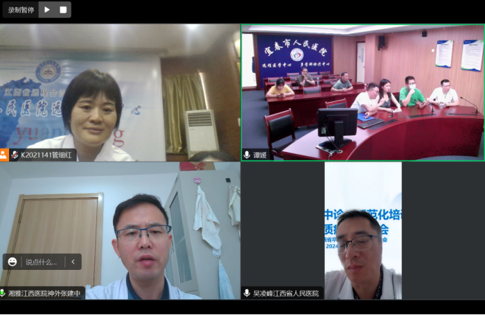 | 2024年9月4日,江西省人民医院(南昌医学院第一附属医院)远程会诊中心联合中南大学湘雅医院江西医院(国家神经疾病区域医疗中心)神经内、外科开展疑难病例远程会诊,给宜春市人民医院1例危重患者会诊,并制定了下一步治疗方案,为基层合作医院排忧解难,切实提升基层医疗服务水平。神经外科主任医师张建中(主会诊)、神经内科主任医师吴凌峰参加会诊。