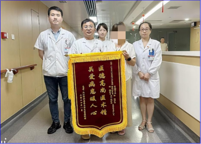 术后1周,晏大叔康复出院。此时晏大叔的心情由“炙热”转为平和,像秋天的果实一样稳重而踏实。为了感谢李林锋团队及护理人员,他和老伴特地赠送了一面锦旗。他开玩笑地说:“这个病就像身体里埋了个定时炸弹,我每天夜不能寐。特别感谢各位医生及护理人员,用高超的技术和细心的呵护为我拆弹,真的很惊心动魄。在这场巅峰对决中还好有惊无险,现在我终于可以安心地休息了,真的很感谢!”。李林锋回复道:“谢谢您对我们工作的肯定,我们将一如既往地为每一位患者提供最好的医疗服务,让每一位患者都能感受到我们不仅拥有专业的技术,还拥有爱心、耐心和同情心。”