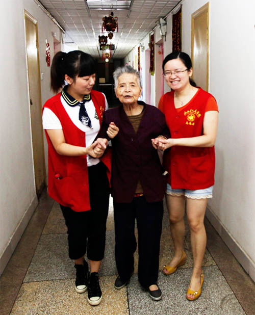 8月25日,江西省人民医院的志愿者带着医疗检查设备,为南昌市爱心养老院的老人量需要、测脉搏、听心率、查肺部。一些志愿者搀扶起老人,一边听老人讲自己的经历,一边为老人讲解疾病的治疗和身体保健需要注意的事项。