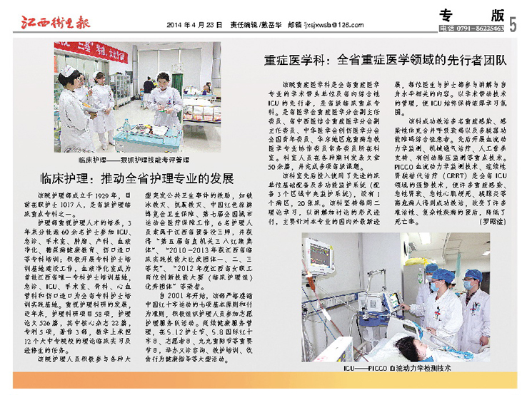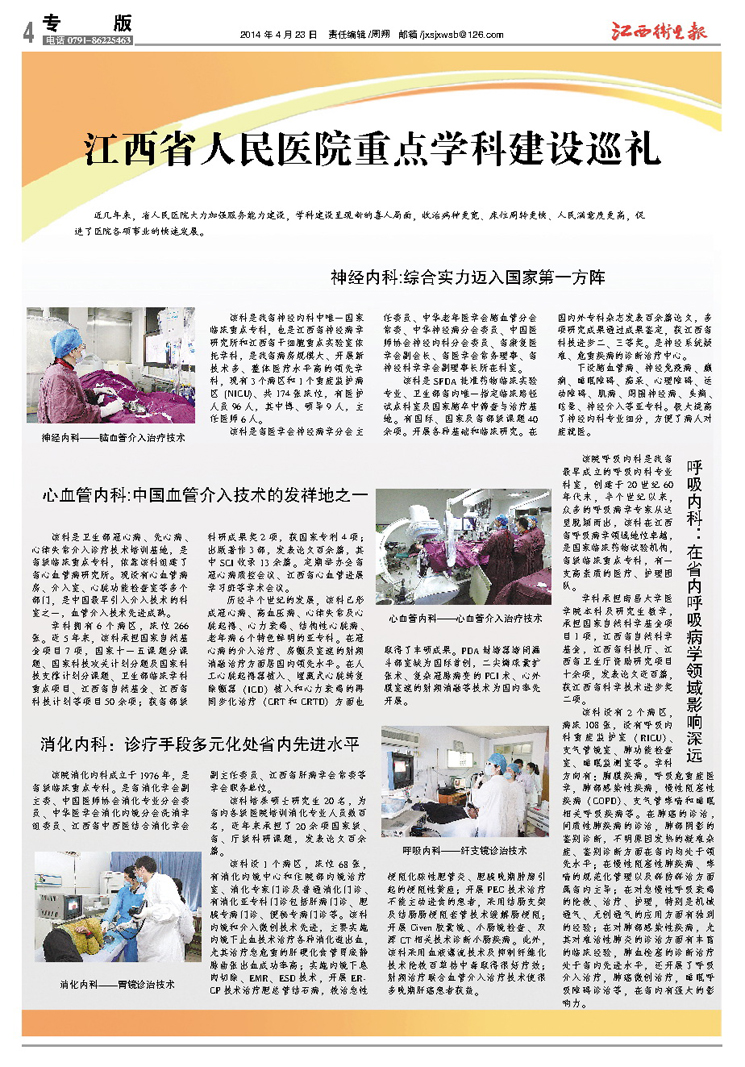 《江西卫生报》江西省人民医院重点学科建设巡礼