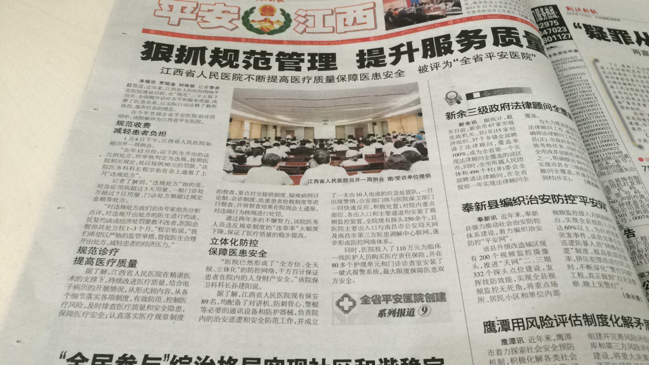 江西省人民医院不断提高医疗质量保障医患安全 被评为“全省平安医院”