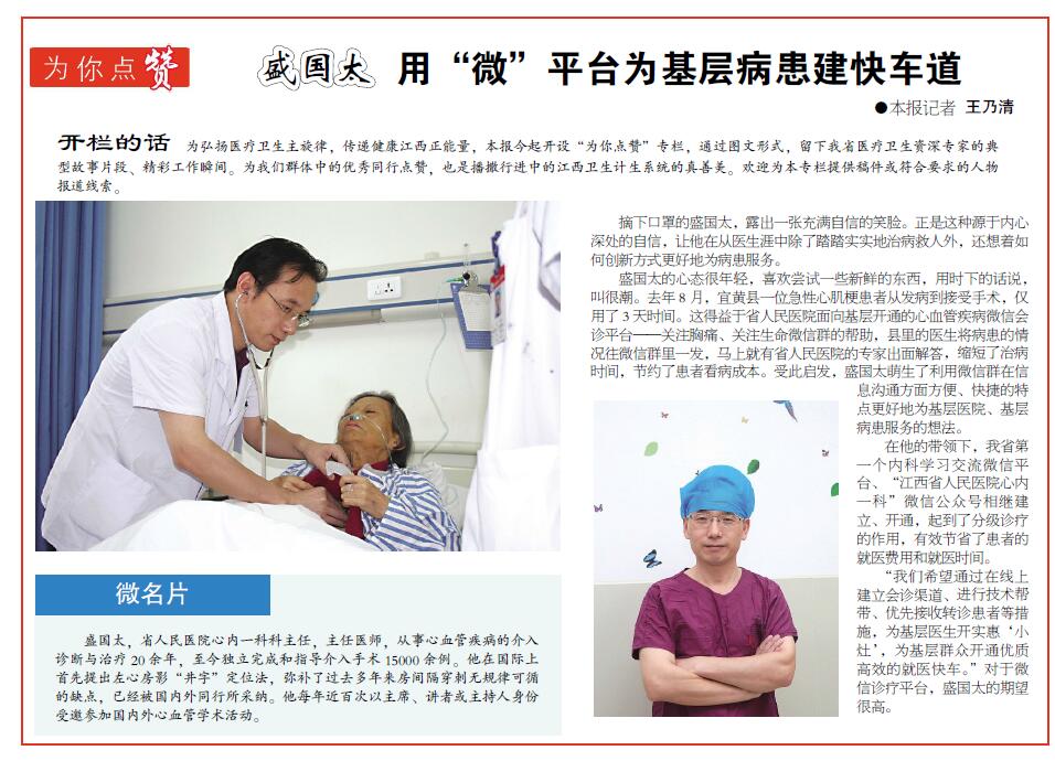 《江西卫生报》盛国太 用“微”平台为基层病患建快车道