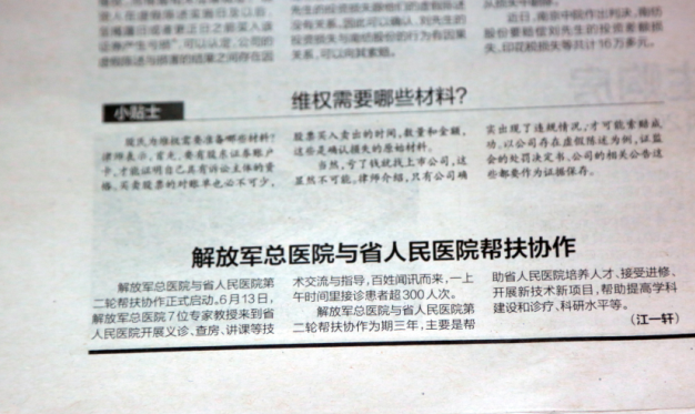 《信息日报》解放军总医院与省人民医院帮扶协作