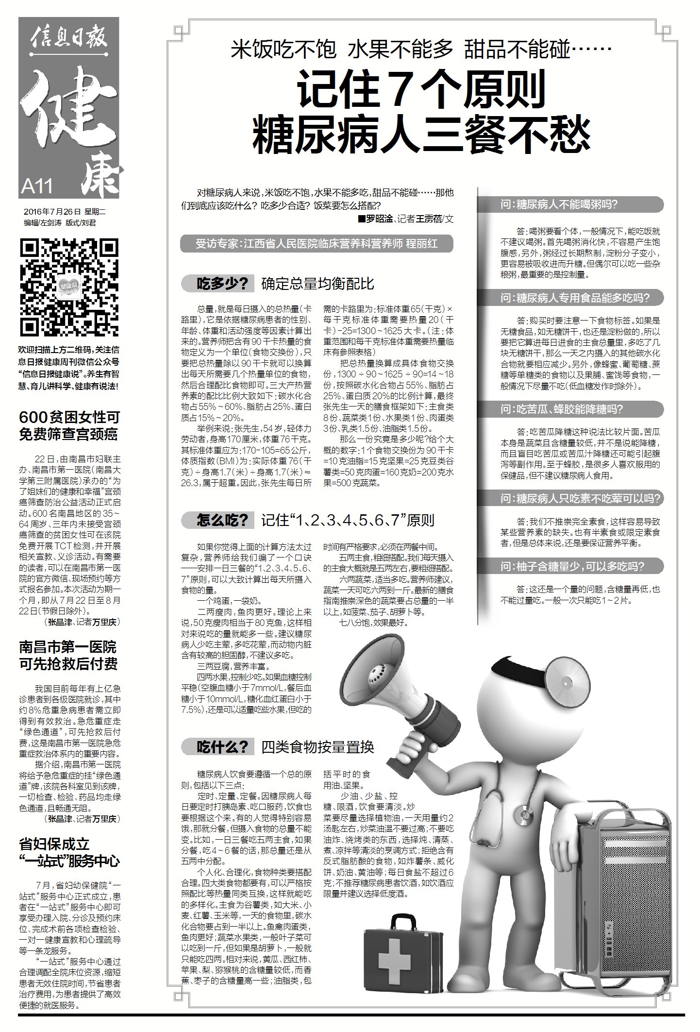 《信息日报》记住7个原则糖尿病人三餐不愁