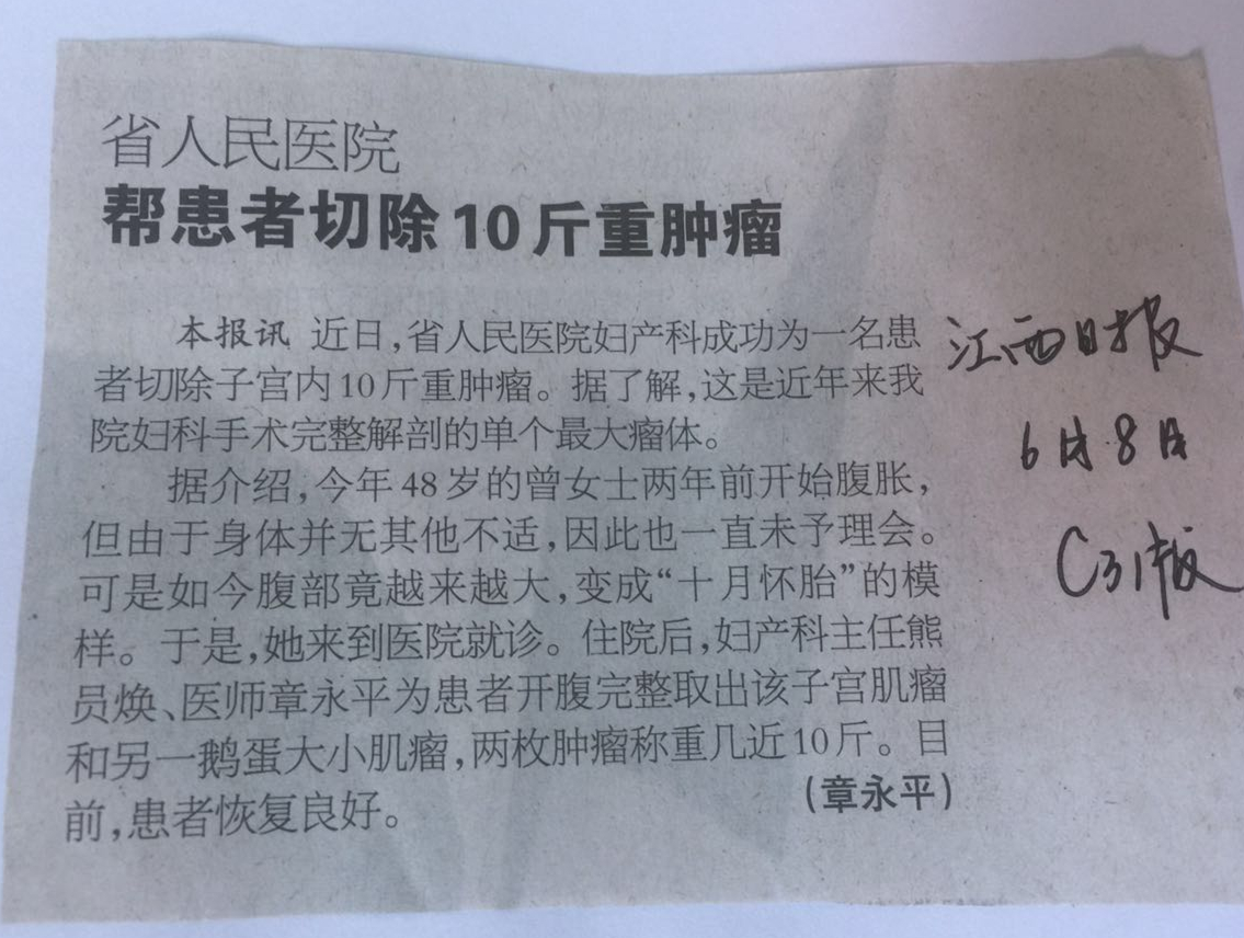 《江西日报》省人民医院帮患者切除10斤重肿瘤