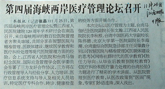 《江西日报》第四届海峡两岸医疗管理论坛召开