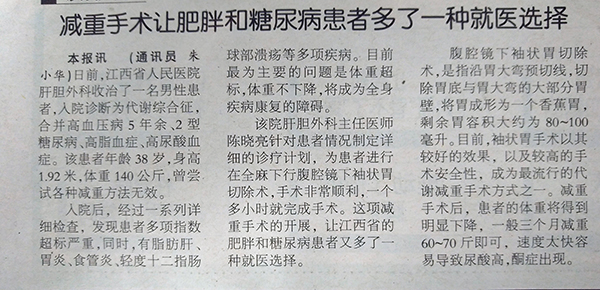 《家庭医生报》减重手术让肥胖和糖尿病患者多了一种就医选择