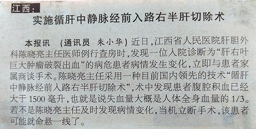 《家庭医生报》实施循肝中静脉经前入路右半肝切除术