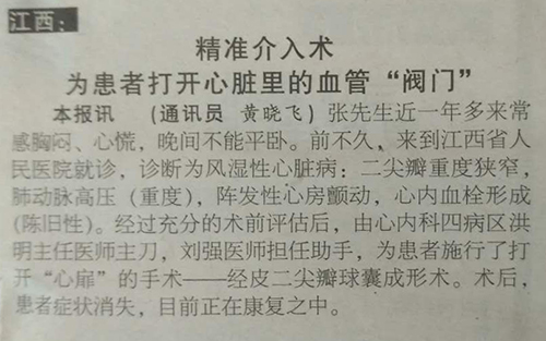 《家庭医生报》精准介入术为患者打开心脏里的血管“阀门”