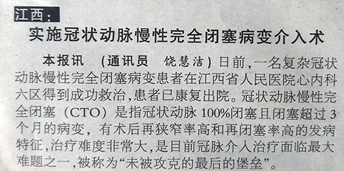 《家庭医生报》实施冠状动脉慢性完全闭塞病变介入术