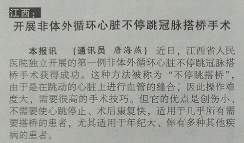 《家庭医生报》开展非体外循环心脏不停跳冠脉搭桥手术